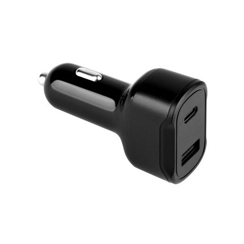 Jetzt DIRAC. KFZ-Ladegerät mit USB-A Anschluss 18W und USB-C 20W in 100% rABS als hochwertigen Werbeartikel bedrucken