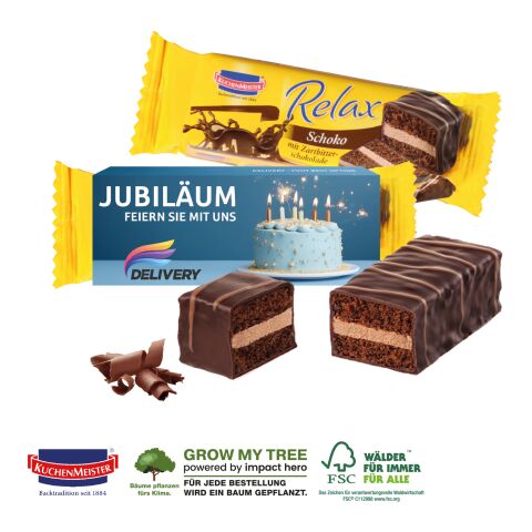 Köstlicher Mini-Kuchen! Das kleine Schokoglück für zwischendurch: Kuchenmeister Schoko Kuchen Riegel gefüllt mit köstlicher Kakaocreme und umhüllt von edler Zartbitterschokolade.. Produktdetails: Mini Schoko Kuchen von Kuchenmeister verpackt in einem individuellen Werbeschuber.. Nachhaltigkeit: Für jede Bestellung mit uns wird ein Baum über GROW MY TREE gepflanzt. Wir verwenden FSC® zertifizierten Karton aus nachhaltiger Forstwirtschaft und anderen kontrollierten Quellen.Beliebte Produkte aus der Kategorie Lebensmittel