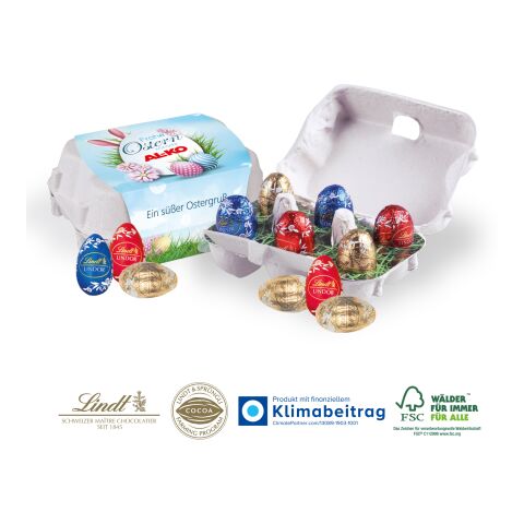 Schoko-Eier 6er-Set mit Lindt Schoko-Eier, Klimaneutral, FSC® als originellen Werbeartikel verschenken